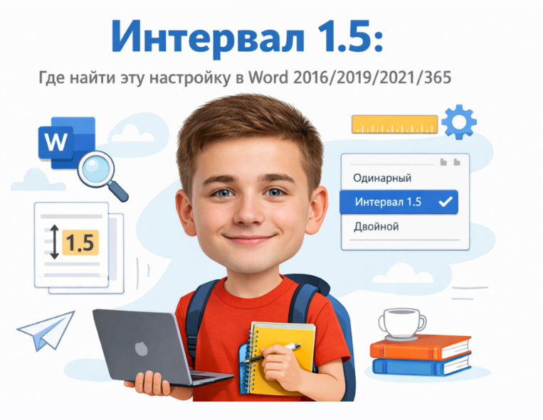 Открываешь Word, начинаешь писать курсовую — а преподаватель возвращает со словами «неправильный интервал». Проверяешь: вместо полуторного стоит 1.15. Проблема в том, что Microsoft изменила настройки по умолчанию начиная с Word 2007, и теперь все новые документы создаются с межстрочным интервалом 1.15 вместо привычного 1.5.По ГОСТу 7.32-2017 для курсовых и дипломов требуется полуторный межстрочный интервал (это и есть 1.5). Если не изменить настройку, работу не примут — проверено на сотнях студентов. Сейчас покажу три способа исправить это за 30 секунд, включая установку 1.5 по умолчанию для всех будущих документов.