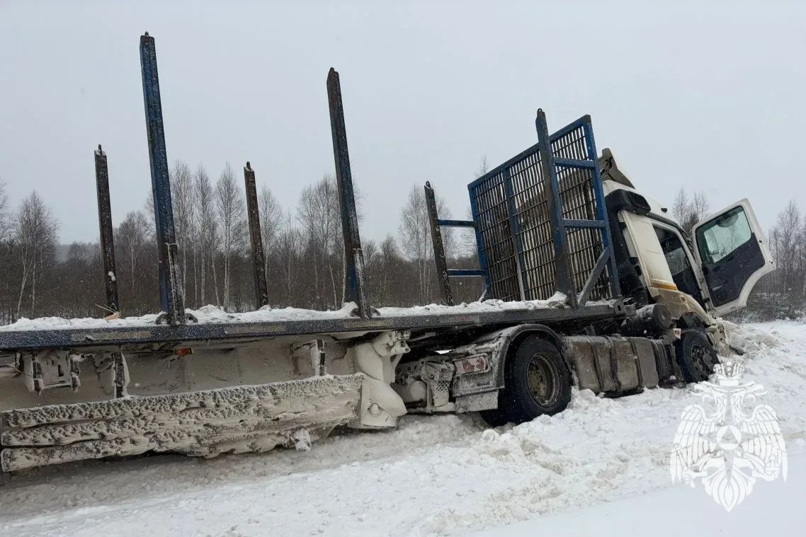 Утром 25 февраля на трассе Кинешма — Иваново возле поворота на деревню Мальчиха столкнулись две легковушки и лесовоз «КАМАЗ». Пострадали двое: 44-летний мужчина и 38-летняя женщина. Оба госпитализированы в областную больницу, сообщает МЧС. Фото: МЧС России по Ивановской области