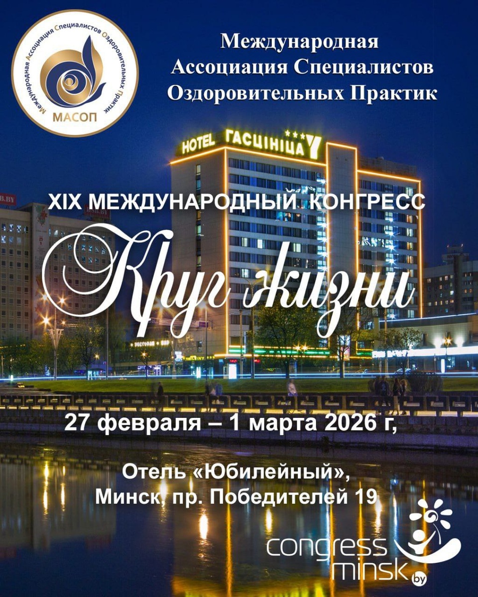 ! Очередной Конгресс «Круг Жизни» откроется совсем скоро. Автор технологии СИМВОЛО-АДАПТЕР Сергей Николаевич Быков примет участие, представит свою новую книгу и презентует свои разработки. Приглашаем присоединиться и открыть для себя последние достижения в области оздоровительных практик. Расписание с таймингом👇 https://congressminsk.by/программа/ 📍 Место проведения: Минск, отель "Юбилейный", пр. Победителей, 19. 💰 Стоимость участия 70руб. за 3 дня Конгресса. Ссылка на оплату https://checkout.bepaid.by/v2/confirm_order/prd_d1c358e1350e4eb2/5122