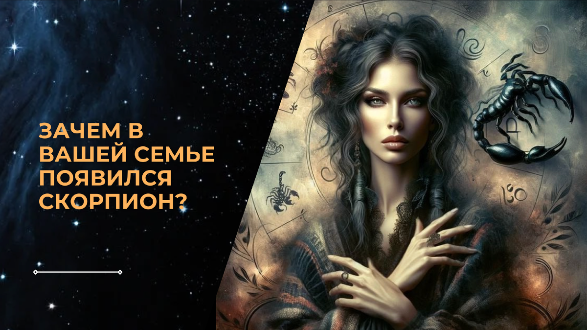 Скорпион связан с 8 домом — темами кризиса, наследия, родовых историй, скрытых травм. Очень часто именно через скорпионью энергию в семье начинают вскрываться старые сценарии: зависимости, тайны, подавленные конфликты, темы власти и контроля.