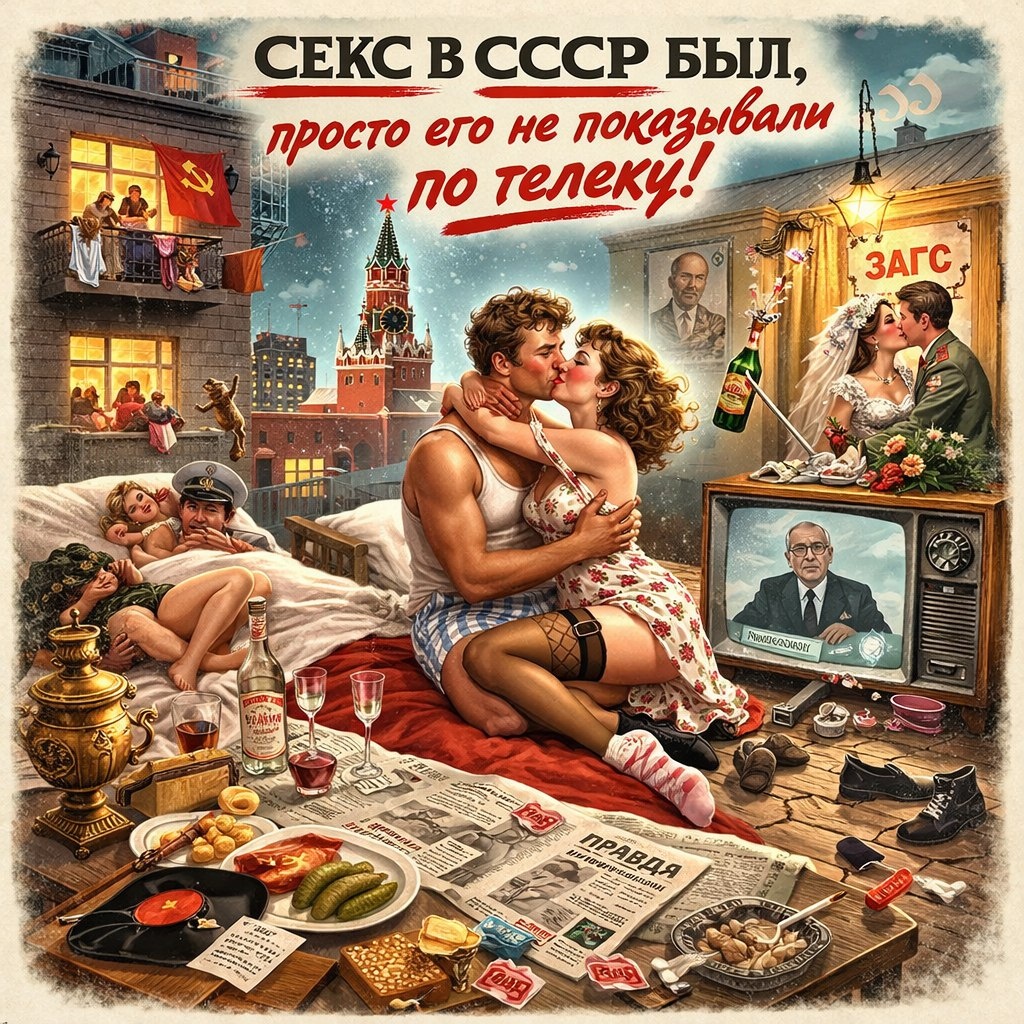 Вы только вдумайтесь в этот пиздец! Фраза, которая уже полтинник лет мозг выносит всему поколению, — "В СССР секса нет" — нахуй никто и не говорил. Это как с анекдотом про Чапаева: все знают, а хуй знает, откуда ноги растут. Короче, был в 1986-м телемост Ленинбург – Бостон. Наши тётки с американскими тёлками через космос трепались. И одна американка, глядя на свою рекламу, где всё прыгает вокруг сисек, спрашивает: "А у вас, петушары, тоже реклама через постель скачет?" И тут наша, Людмила Иванова (администраторша гостиницы, а не профессор сексологии, кстати), ляпает: "Ну, секса у нас... (тут она засмущалась, как пионерка) секса у нас нет, и мы категорически против этого!" Американцы в ауте, наши в зале гогочут. А она следом, когда шум утих, добавила: "У нас есть любовь!" И ещё одна баба с заднего ряда крикнула: "Секс есть, у нас рекламы его нет!". И пизда. Кто-то из остроумных журналистов отрезал как хуй собачий — "Секса у нас нет", выкинул про любовь, про рекламу, и покатилась пизд