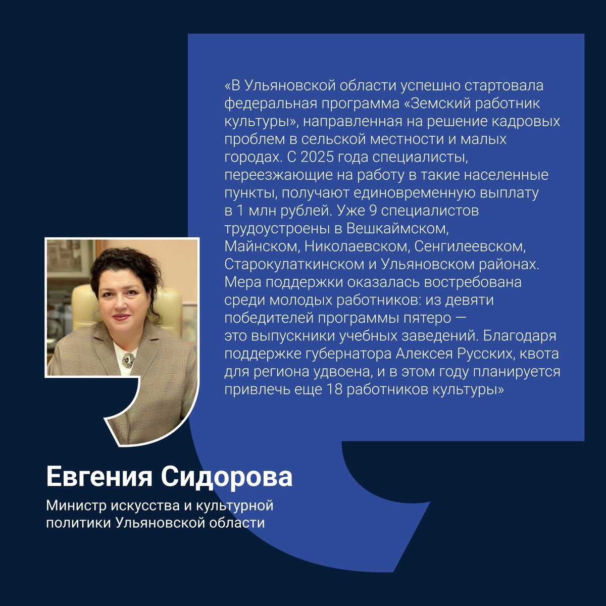 👋 О расширении программы поддержки специалистов, работающих в сельской местности, рассказал премьер-министр Михаил Мишустин во время своего отчета о работе Правительства РФ за минувший год. В Ульяновской области уже есть первые результаты: 9 специалистов прошли конкурсный отбор и получили федеральную поддержку в виде единовременной выплаты в размере 1 млн рублей. Инициатива направлена на привлечение профессионалов в небольшие села, а также на развитие культурной инфраструктуры в регионе.