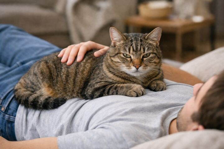 Вовсе не потому, что у вас настолько плоский и удобный пресс на животе Многие хозяева кошек часто задаются вопросом, почему питомцы любят устраиваться именно на их животе. Это поведение имеет несколько возможных объяснений, связанных как с физиологическими потребностями кошки, так и с эмоциональной привязанностью к человеку. Кошки, как известно, обожают тепло, а человеческое тело является отличным источником тепла. Живот человека особенно привлекателен для кошек, поскольку он тёплый и мягкий. Когда кошка лежит на груди или животе своего хозяина, она чувствует себя защищённой и спокойной. Такое положение позволяет ей расслабиться и почувствовать близость к своему любимому человеку. Если кошка доверяет своему владельцу, она будет стремиться находиться рядом с ним, демонстрируя свою привязанность. Ложась на грудь или живот, кошка показывает, что она ощущает безопасность и комфорт рядом с человеком. Некоторые специалисты считают, что кошки могут чувствовать запах тела хозяина, который напо
