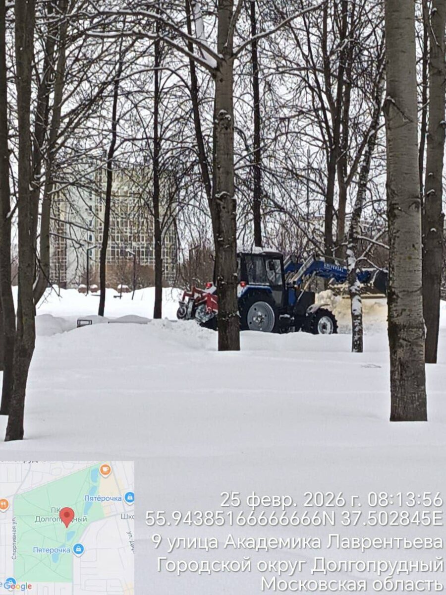 Вчера, сегодня, завтра: уборка снега в парках Долгопрудного продолжается