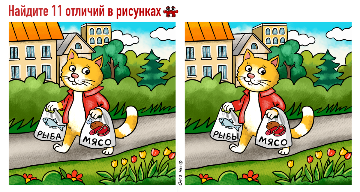 Хорошо бродить по свету с карамелькой, а еще лучше топать домой с пакетами любимой еды:) У нашего Кеши сегодня очень удачный день, припасы на неделю пополнены. Нам только остается за него порадоваться и поискать 11 отличий. Всем хорошего настроения!