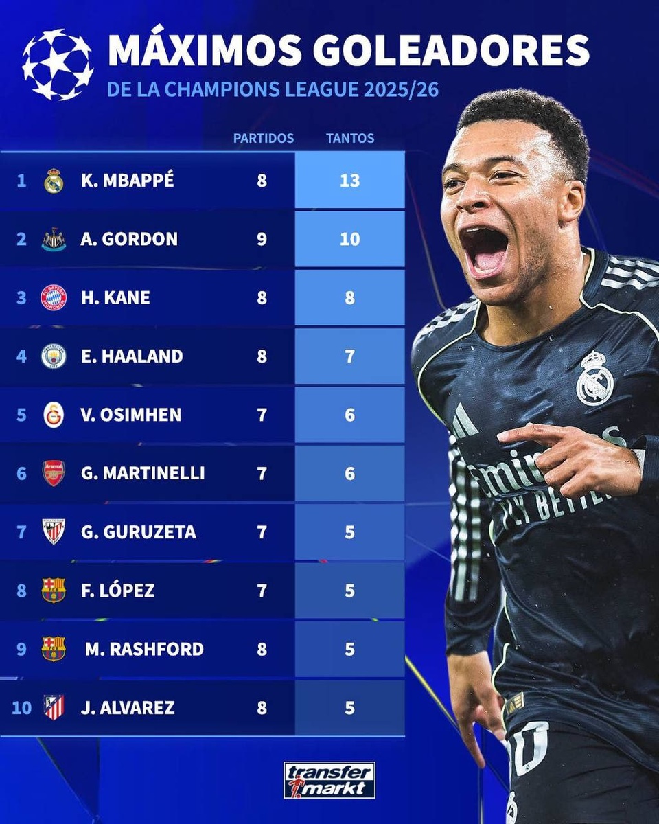 🏆 Список лучших бомбардиров текущего розыгрыша ЛЧ