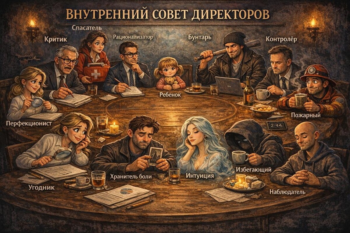 Внутри каждого из нас - не один голос, там целый совет директоров. Критик стучит кулаком по столу, Контролер требует план и отчета. Ребенок хочет тепла, а Избегающий предлагает «давай потом». Интуиция шепчет, но её редко слушают. Спасатель всегда готов прийти на помощь, даже если не зовут. А Перфекционист кричит, что ты «не достаточно хорошо сделал». Эти и другие части - есть у всех. Вы с ними знакомы? Но главное - кто сегодня у руля? Кто подписывает контракт вашей жизни? И есть ли внутри тот самый «Я», который способен выслушать всех… и выбрать главного? Предлагаю об этом подумать. 😉