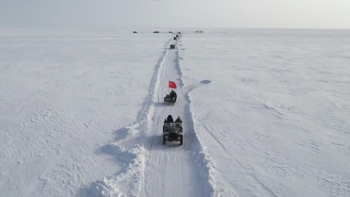 Видео: по ледовой трассе Дороги жизни прошла колонна исторической техники