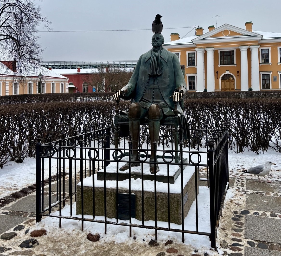 Добрый день, друзья. В этой статье покажу вам один памятник, который вызывает у меня довольно сильные и почти исключительно негативные ощущения. Речь идет о памятнике Петру I, который стоит в сквере между Петропавловским собором и Музеем истории Санкт-Петербурга. Его создал знаменитый скульптор Михаил Шемякин, и установили его в 1991 году. С тех пор он стал предметом жарких споров и обсуждений. Знаете, почему? Все дело в его необычном облике. Если вы присмотритесь, то заметите, что у Петра I здесь очень крупное тело, длиннющие руки и ноги, а голова кажется непропорционально маленькой: Сам автор скульптуры объясняет такое решение очень необычным образом. Он отметил, что вдохновлялся традициями православной иконописи. В иконописи часто используются символические пропорции, чтобы подчеркнуть духовное значение образа, а не его физическую точность. Шемякин хотел передать через эти пропорции некую внутреннюю мощь и силу императора. Но, как это часто бывает с произведениями искусства, мнения
