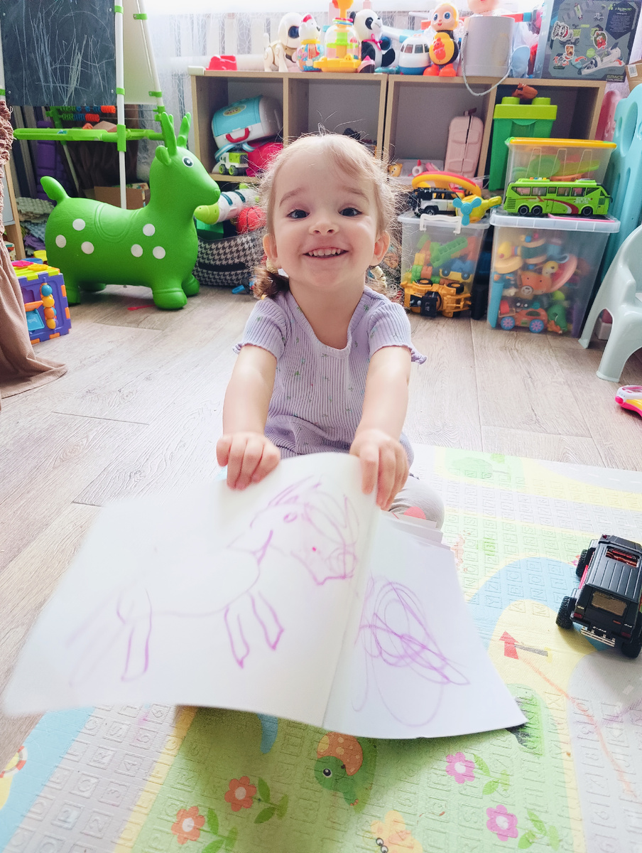 Сами крутили конструктор и так, и сяк. Амелия придумала ракету. Но на плоскости. Тоже неплохо. Сева повторял потом за ней. Стали экспериментировать, фигурки в разных вариациях раскладывать. И озвучивали. То домики получились, Амелия виртуальных животных в них расселила, то забор, то башня.