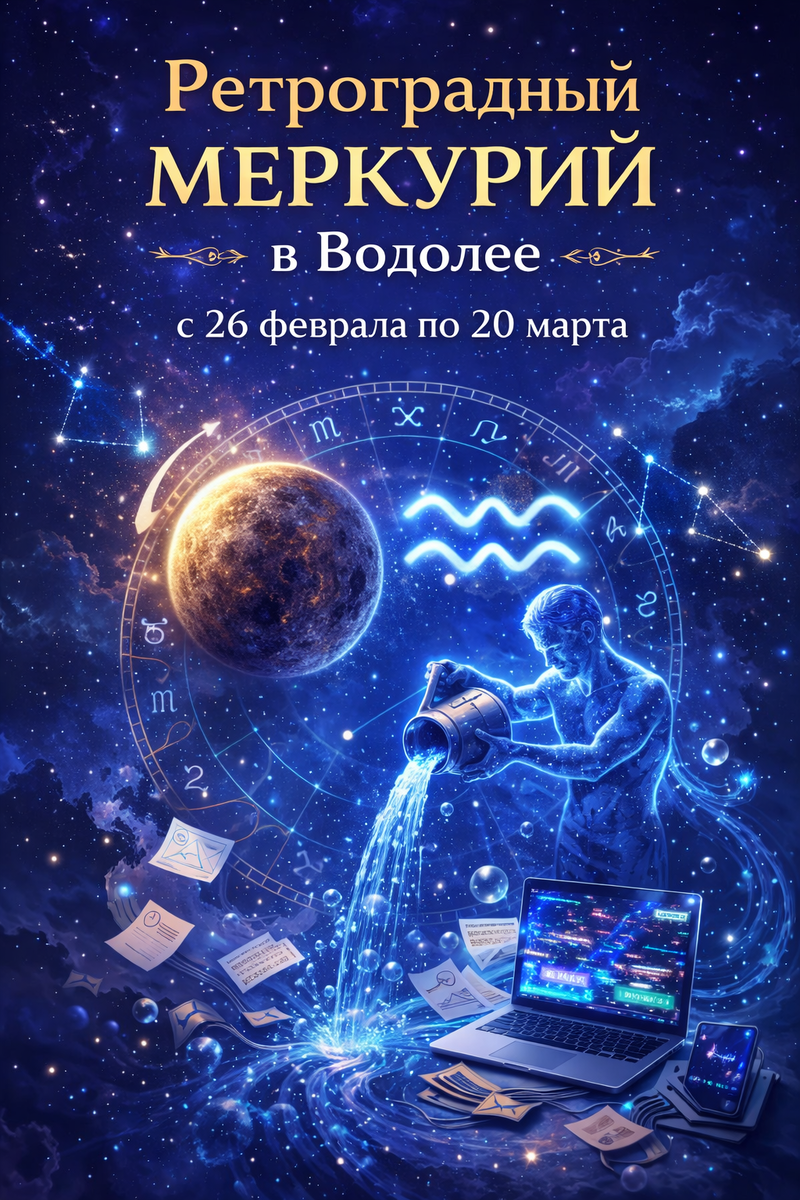 И главный совет на весь период — будьте внимательны к деталям. Ретроградный Меркурий вносит элемент неопределённости в сферы: В этот цикл Меркурий проходит ретроградность в знаке Водолей — а значит, его урок для нас не просто «всё перепроверять», а быть осознаннее в планах и в общении с единомышленниками. Водолей — знак: Именно поэтому в этот период чаще всего «плывёт» связь: В ретроградный Меркурий: Меркурий искажает привычный способ восприятия информации, поэтому важно помнить: