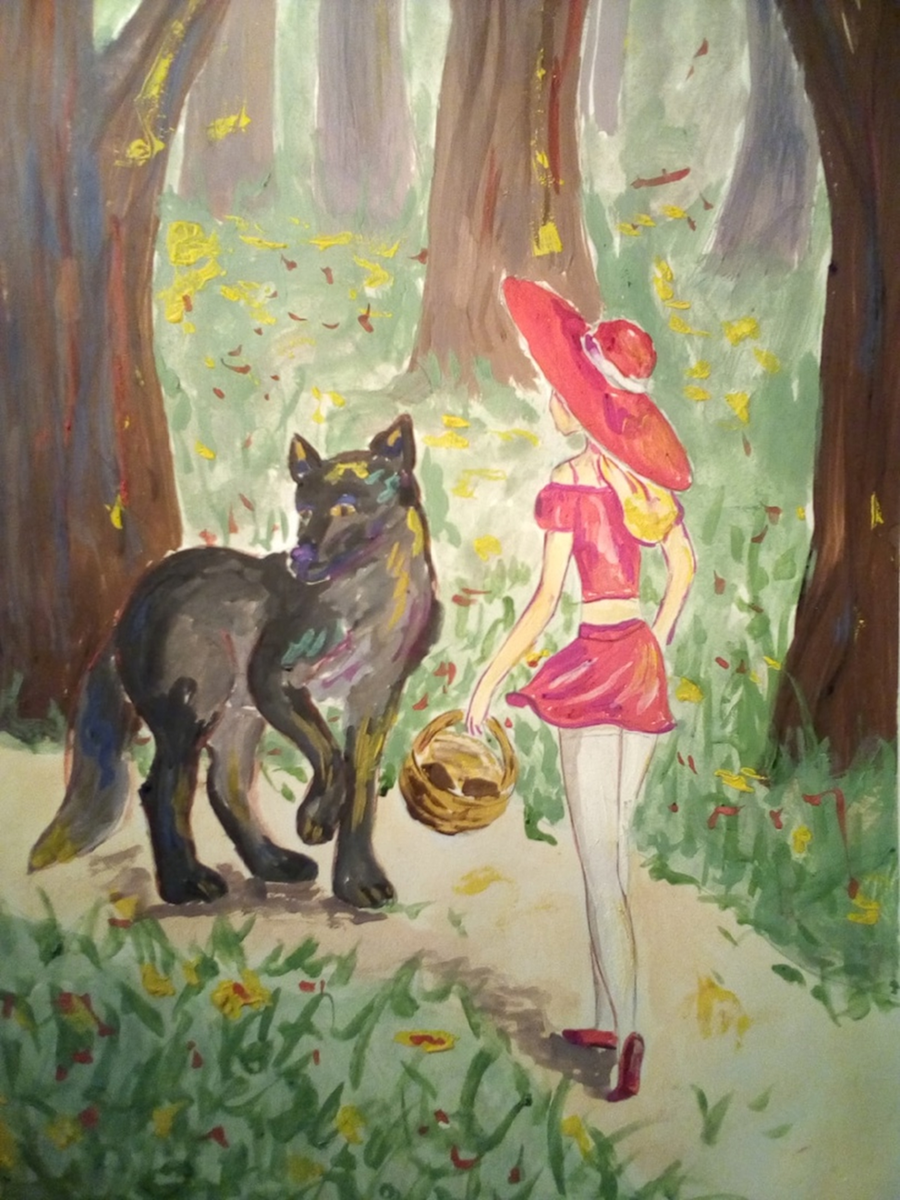 Волк решил проводить Красную Шляпу до бабушкиного домика, а то мало ли что… Неприятностей Волку и так хватало.