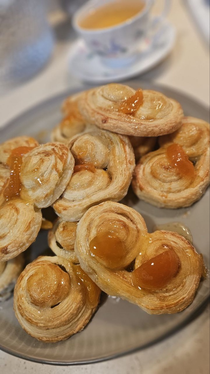 Но глазурь сегодня снизу и прекрасно, вся впиталась... Берлинское печенье. Готовое слоеное тесто ( дрожжевое или без - неважно) оттаять и чуть раскатать. Посыпать сахаром. Скрутить трубочкой к середине с обеих сторон руками. Перевернуть. Порезать на печенье. Выпекать в разогретой духовке при 190 градусах до румяности 15 минут. Не пересушить. Остудить Смазать джемом или вареньем. У меня абрикосовое. Сверху глазурью. Глазурь : 100 гр. Сахарной пудры + 1 ст. ложка воды, подогреть на маленьком огне, хорошенько помешивая, выдавить из половинки маленького лимона сок,смотрите, чтобы не было очень жидко. Перемешать и ещё раз смазать наши печенья. Просто, быстро и очень вкусно. 🍁Если вы хотите,чтобы они были, как из магазина, положите заготовки в морозилку на 20 минут перед выпечкой. (я не кладу). Приятного аппетита