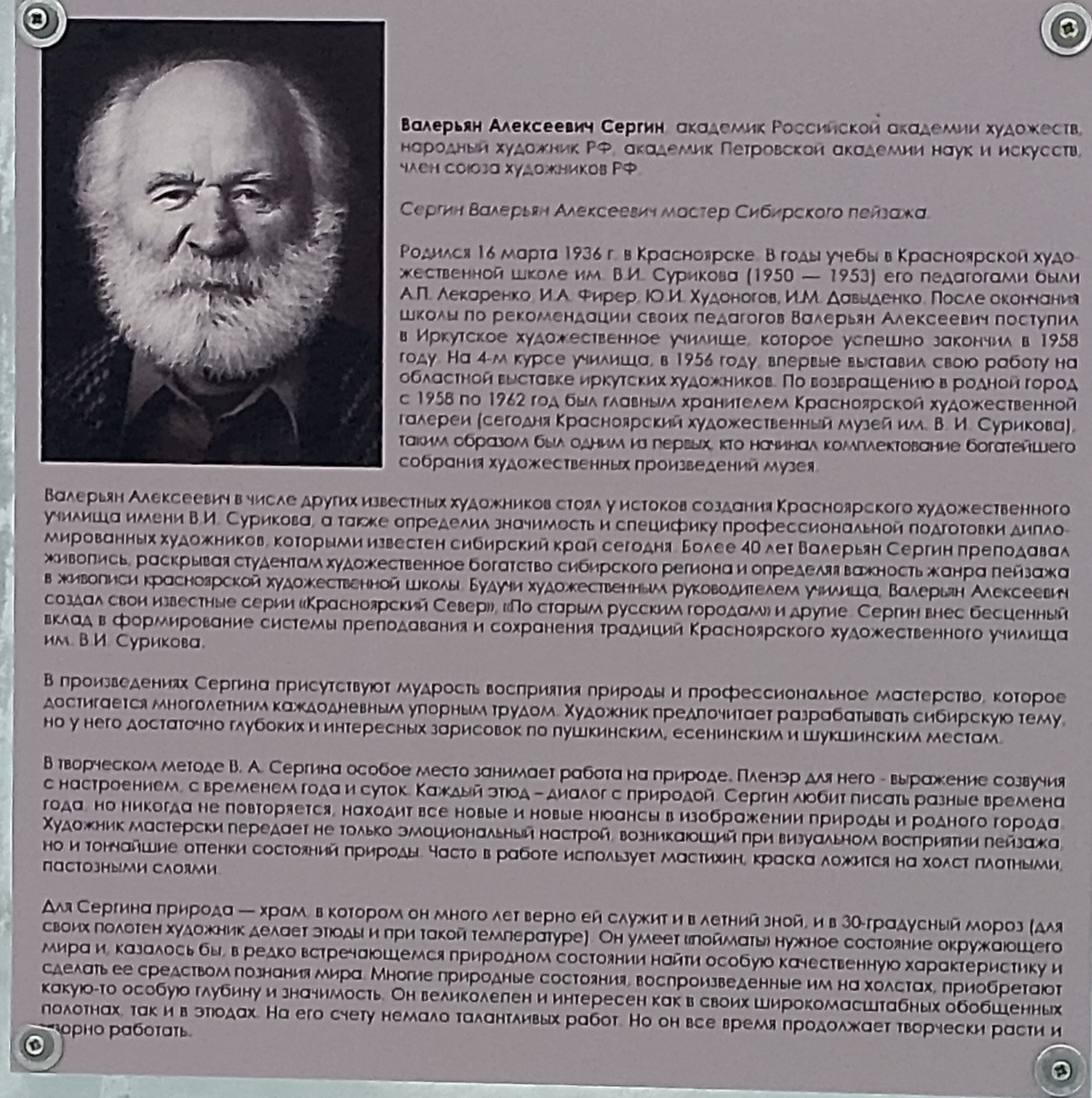 Биография красноярского художника Валерьяна Алексеевича Сергина.