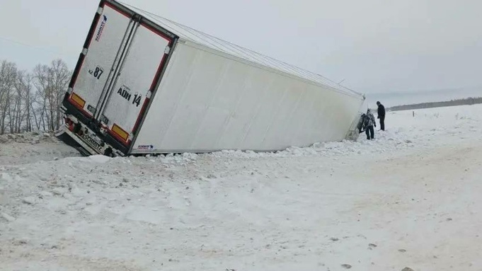 В Алтайском крае маневр во избежание ДТП завершился съездом фуры в кювет