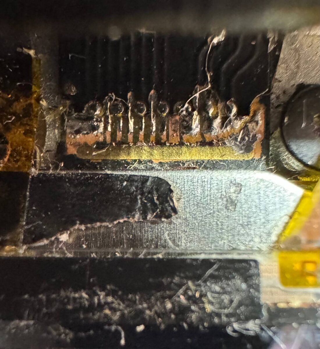 MacBook Pro 15” A1707 с проблемой шлейфа подсветки flexgate. При полном открытии дисплея она гаснет. Чтоб не отклеивать матрицу можно частично заменить шлейф подпаявшись у самого основания, в неподвижной части шлейфа.
