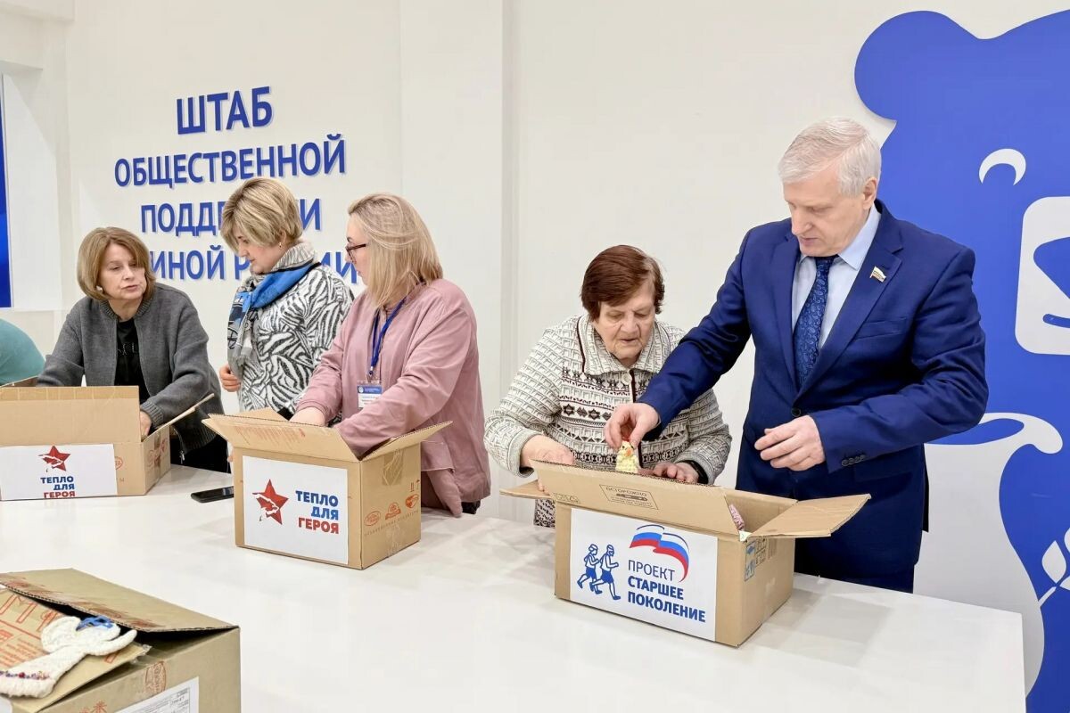 Акция проводится в рамках партийного проекта «Старшее поколение», федеральным координатором которого является сенатор от Воронежской области Галина Карелова Воронежская область традиционно провела в этом году акцию «Тепло для Героя», которая направлена на поддержку участников специальной военной операции и приурочена ко Дню защитника Отечества. На протяжении нескольких недель в Штабе общественной поддержки работал пункт приема, куда неравнодушные жители, «серебряные» волонтеры, представители соцзащит и молодогвардейцы, депутаты и общественники приносили теплые вещи, продукты длительного хранения, сладости и поздравительные открытки для участников СВО. Так, например, участницы клубов при управлениях социальной защиты населения вязали для военнослужащих носки, перчатки, шарфы и обереги. Первый заместитель председателя Воронежской областной Думы, который в регионе курирует партпроект «Старшее поколение», Александр Солодов встретился с «серебряными» волонтерами и помог сформировать посылки