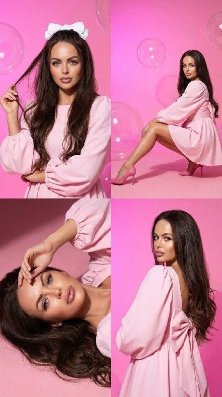 Девушка в кукольном платье Розовая студия с пузырями и бантом