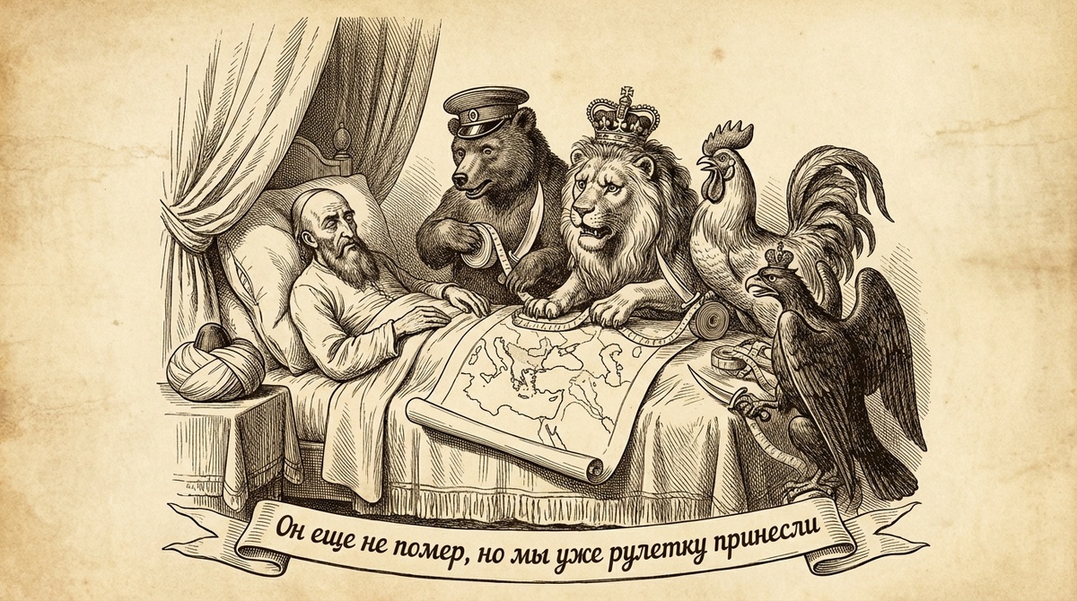 - Суть: Османская империя (Турция) слабела на глазах. Все европейские страны (Англия, Франция, Австрия и Россия) кружили вокруг неё, как стервятники, ожидая, когда она развалится, чтобы отхватить кусок (Балканы, проливы, Ближний Восток).