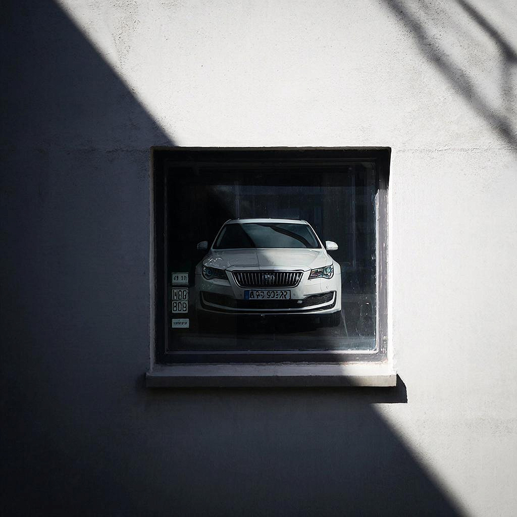 на фоне яркого окна, но не превращается в силуэт; номера машин читаются при встречном солнце; интерьер и улица видны одновременно.