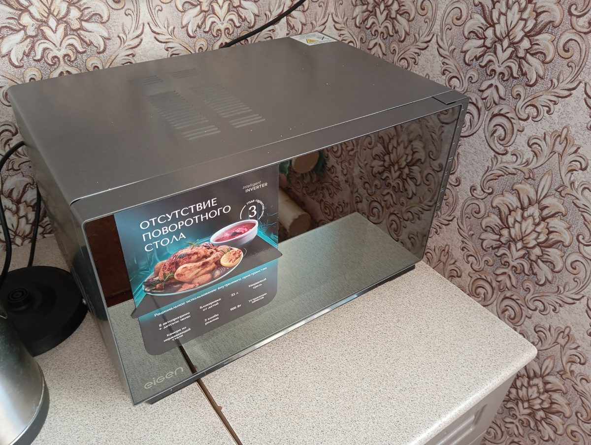 Удивила тем, что нет поворотного стола, то есть в ней нет не какого вращения. Сразу вспомнились старые микроволновки которые были у нас и у наших друзей и родственников. Которые в свою очередь выходили из строя очень часто, по причине отказа вращения механизма. Да греть без вращения можно ,но будет греть не равномерно .