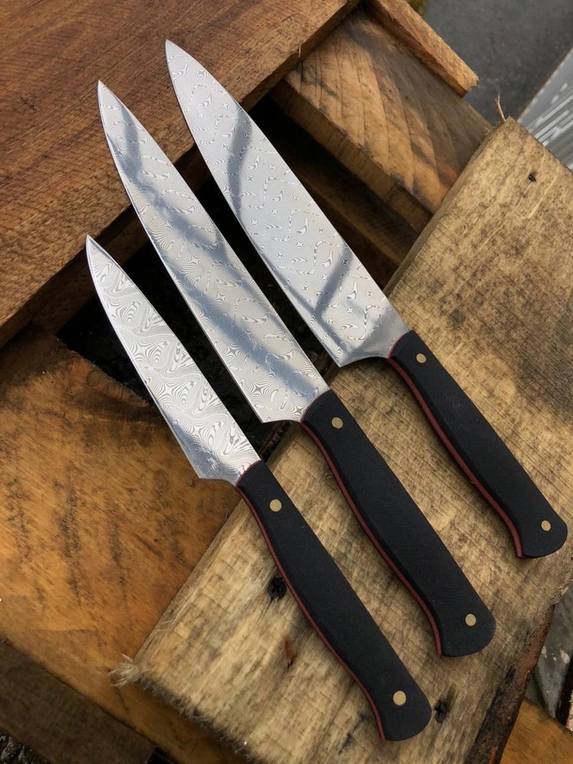 Основная серийная сталь в моём производстве — VG-10. Она хорошо показывает себя в тестировании благодаря стабильной термообработке и сбалансированной твёрдости. Для поковок мы используем Х12МФ, AUS-8, AUS-10, VG-10. Каждая сталь ведёт себя по-своему, и это учитывается при проверке.