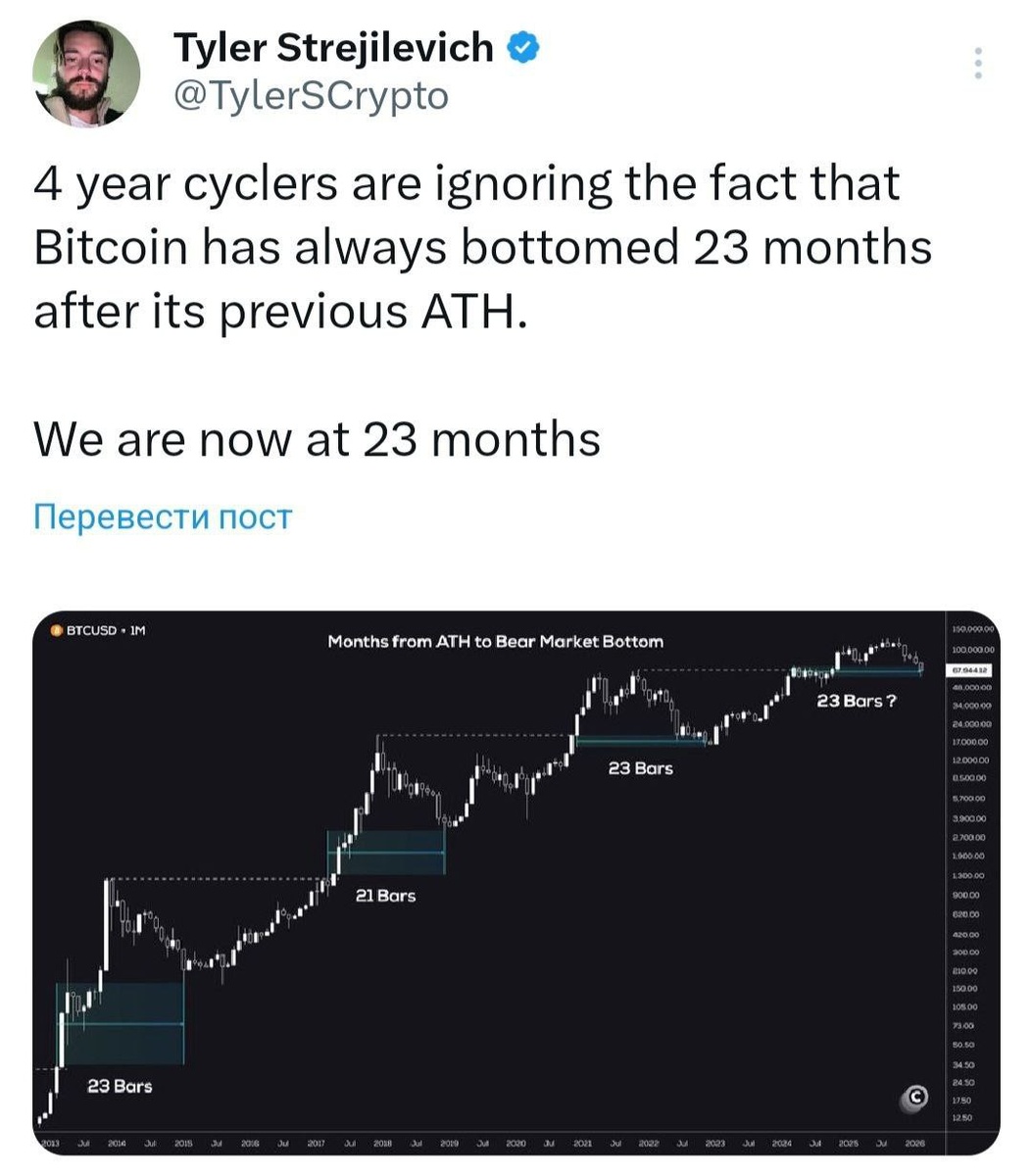 Сторонники 4-летних циклов игнорируют тот факт, что Биткоин всегда достигал дна через 23 месяца после своего предыдущего ATH.
