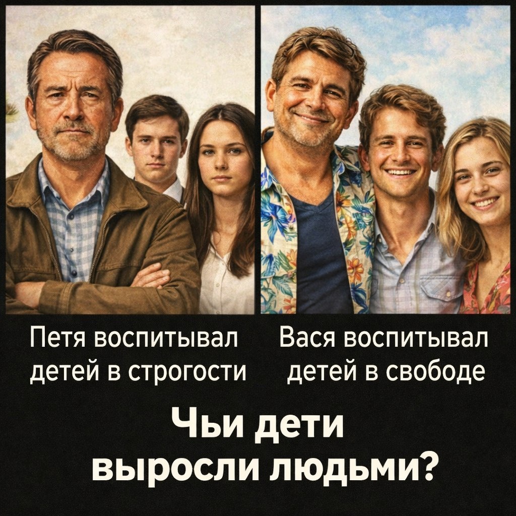 А правда, как всегда, посередине. И Петя, и Вася перегнули палку. Потому что воспитание — это не только про строгость и не только про свободу. Это про то, чтобы вовремя отпустить, но не потерять. Чтобы настоять, но не сломать. И, наверное, главное, чтобы дети вообще хотели приходить к нам, когда вырастут. Не по звонку, не по чувству долга, а просто так. Потому что папа — не тиран и не приятель, а родной человек.