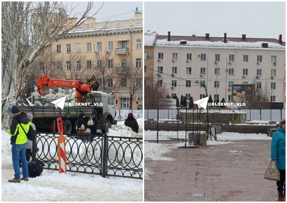 Сегодня днем, 25 февраля, на глазах многочисленных прохожих на Привокзальной площади перед железнодорожным вокзалом Волгограда демонтировали знаменитый фонтан «Детский хоровод», открытие которого прошло с участием президента Владимира Путина.