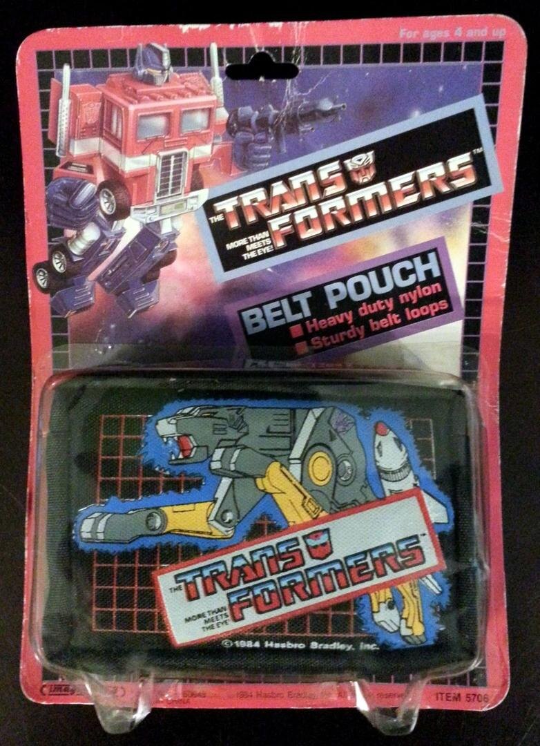 Лицензионных результатов работы других компаний на первый год существования трансформеров пришлось настолько много, что они не уложились в две статьи. В частности, некоторую продукцию мы были вынуждены пропустить, так что с неё и начнём. Компания Imaginings 3 выпускала в основном сумки, каждая из которых существовала в нескольких вариантах. Во-первых, это сумки на ремень с изображением Реведжа. Сама картинка не менялась, но цвет сумки мог быть чёрным, серым или красным. Следующим примером продукции стали велосипедные сумки, трансформирующиеся в рюкзак. На них был нарисован Оптимус Прайм, известны они в чёрном и красном варианте. Реведж вновь появился в сумках для спортзала, которые трансформировались в сумки для крепления на ремень, опять же в чёрном, сером и красном цвете. Обычные сумки для спортзала вновь были трёх цветов, но на этот раз с одной из трёх голографических картинок. Оптимус и Мегатрон известны на красной сумке, Реведж и Санстрикер - на серой, Скайварп и Джаз отметились н