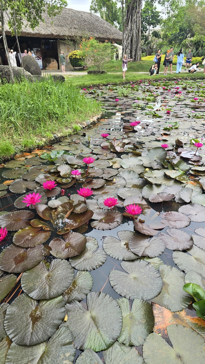 Утром было пасмурно и прохладно, потом тучки разошлись, выглянуло солнце и стало ярко и тепло, а потом опять облачка сгустились, подул прохладный ветерок. И мы решили вернуться в основную часть парка с бассейном с комфортной тёплой водой. Только мы там расположились над джакузи, как появилась большая компания вьетнамских тетушек, в основном среднего возраста. Вели они себя очень шумно, орали, хохотали, громко пели песни.