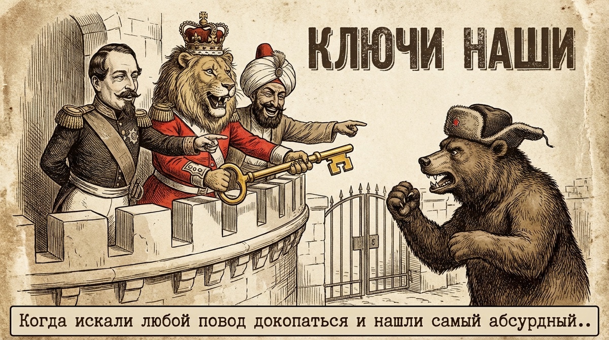 - Повод: Франция и Россия поссорились из-за того, кто будет контролировать ключи от церкви в Вифлееме (Святые места в Палестине). Турки отдали ключи католикам (французам), православные обиделись.