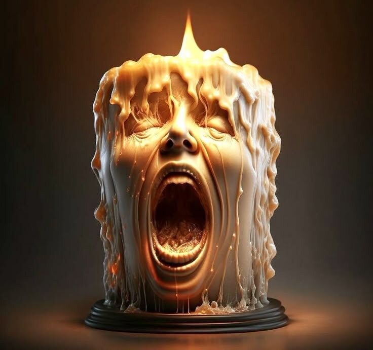 - Края остаются твёрдыми, а расплавленный воск ищет путь вниз — по стенкам.
