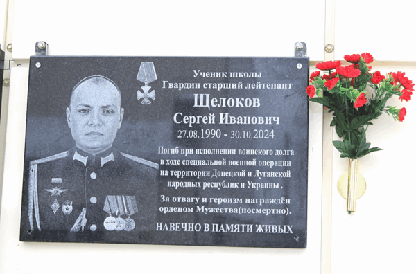 За отвагу и героизм, проявленные в боях с бандеровскими нацистами, гвардии старший лейтенант Сергей Щелоков награждён Орденом Мужества (посмертно). В митинге, достойно знаменующем незыблемую, неразрывную связь поколений и нерушимо утверждённый священный долг благодарной, признательной памяти, приняли участие: исполняющий обязанности заместителя главы администрации Жуковского муниципального округа А.В.Фроловичев, начальник Жуковского управления образования О.М.Артёмова; военный комиссар А.В.Фролов; преподаватели и ученики Троснянской школы; друзья, знакомые, родные павшего офицера; местные жители… Здесь мама Сергея – Наталья Алексеевна, отчим – Сергей Васильевич; жена Наталья Васильевна; есть ещё шестилетняя дочь Полина и старшая сестра Елена… Все они есть, а вот его, Сергея Щелокова, уже нет… Убили Сергея 30 октября 2024 года, близ города Дзержинска Донецкой народной республики. Было ему тридцать четыре года. Почётное право открыть мемориальную доску в честь офицера российской армии