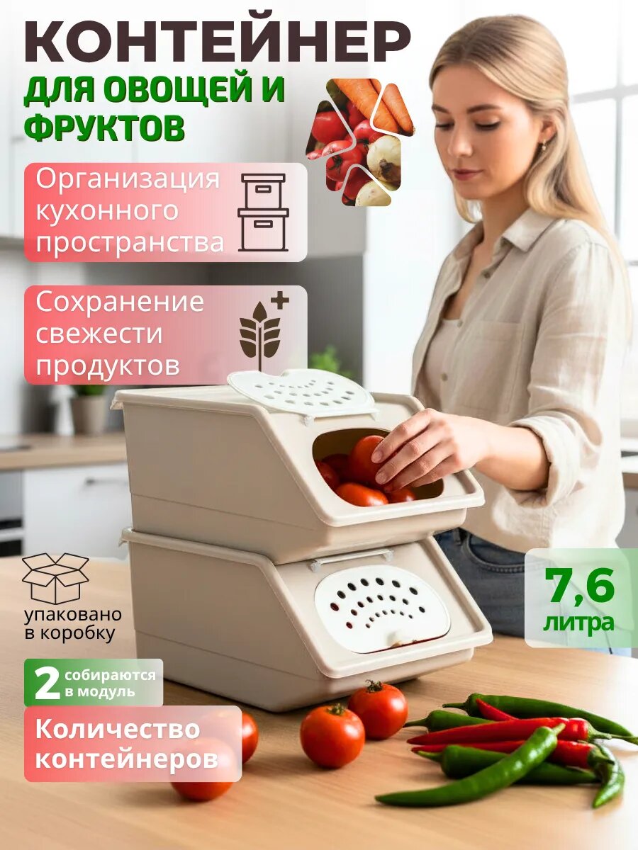 Пищевой пластик, крышка с закрывающимся окошком и вентиляционными отверстиями — этот контейнер специально разработан для хранения овощей и фруктов. Объём 7,6 л, компактный размер, подходит для холодильника, кухонного шкафа и балкона.