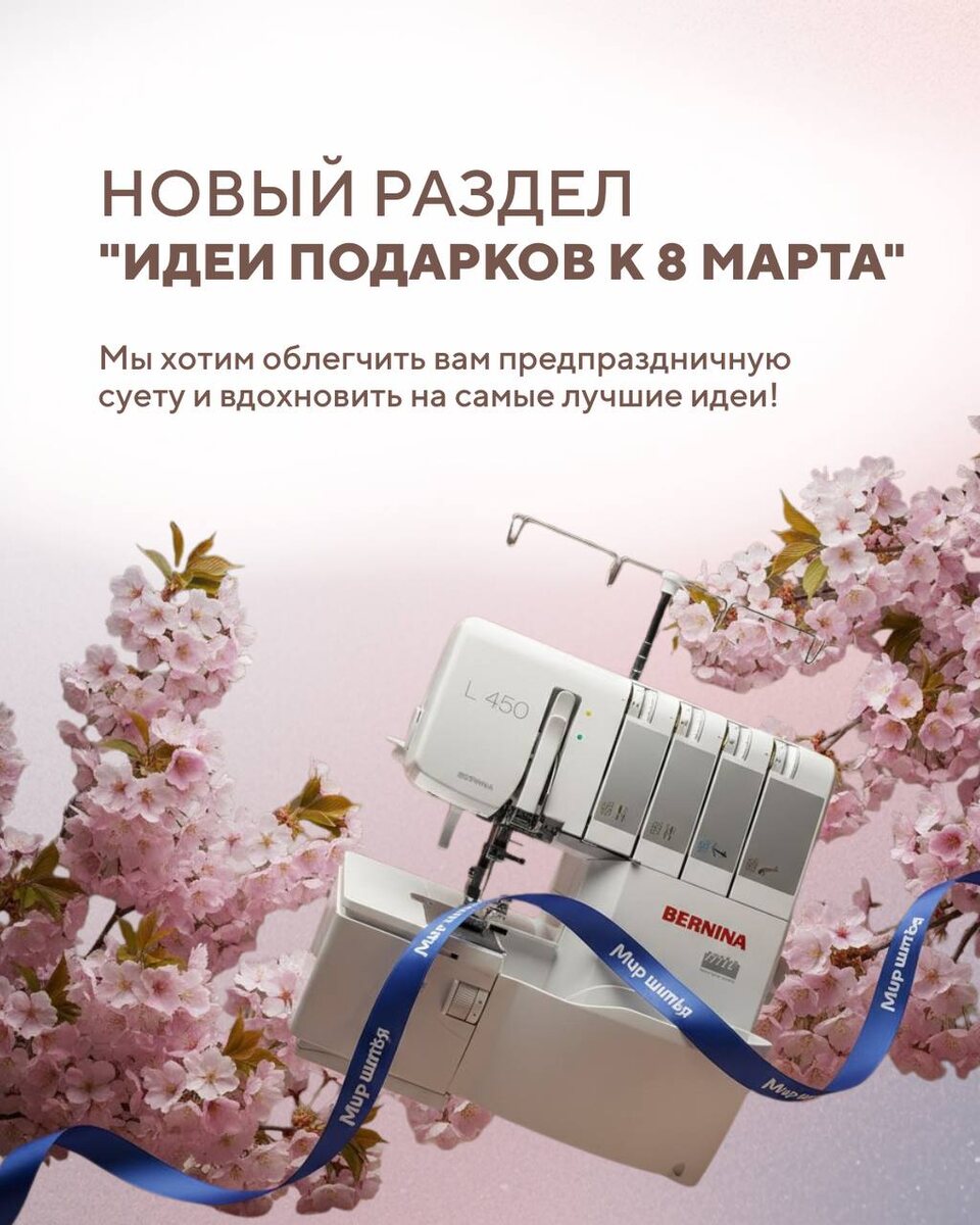 ! 🌸💞 Весна уже не за горами, а вместе с ней – долгожданный и любимый праздник 8 Марта! Чтобы сделать выбор подарков максимально простым и вдохновляющим, команда Мир шитья подготовила для вас нечто особенное! • Новый раздел на сайте "Идеи подарков к 8 Марта" Здесь мы собрали вдохновляющие идеи, разделенные по удобным категориям, чтобы вы могли быстро найти то, что подойдет именно вам. Посмотреть и выбрать – https://clck.ru/3S4HAy • Умные помощники! Мы запустили наших чат-ботов в Telegram и Max, чтобы выбор подарка был еще более легким! Пройдите увлекательный тест и бот предложит подарки на основе ваших ответов А самое приятное – каждый, кто воспользуется услугами бота, получит приятный бонус к своим покупкам! • Бот в Max – https://max.ru/id7810669089_1_bot • Бот в Telegram – https://t.me/mirshitya_promobot Пусть 8 Марта станет днем, наполненным красотой, творчеством и самыми желанными подарками, созданными с любовью!