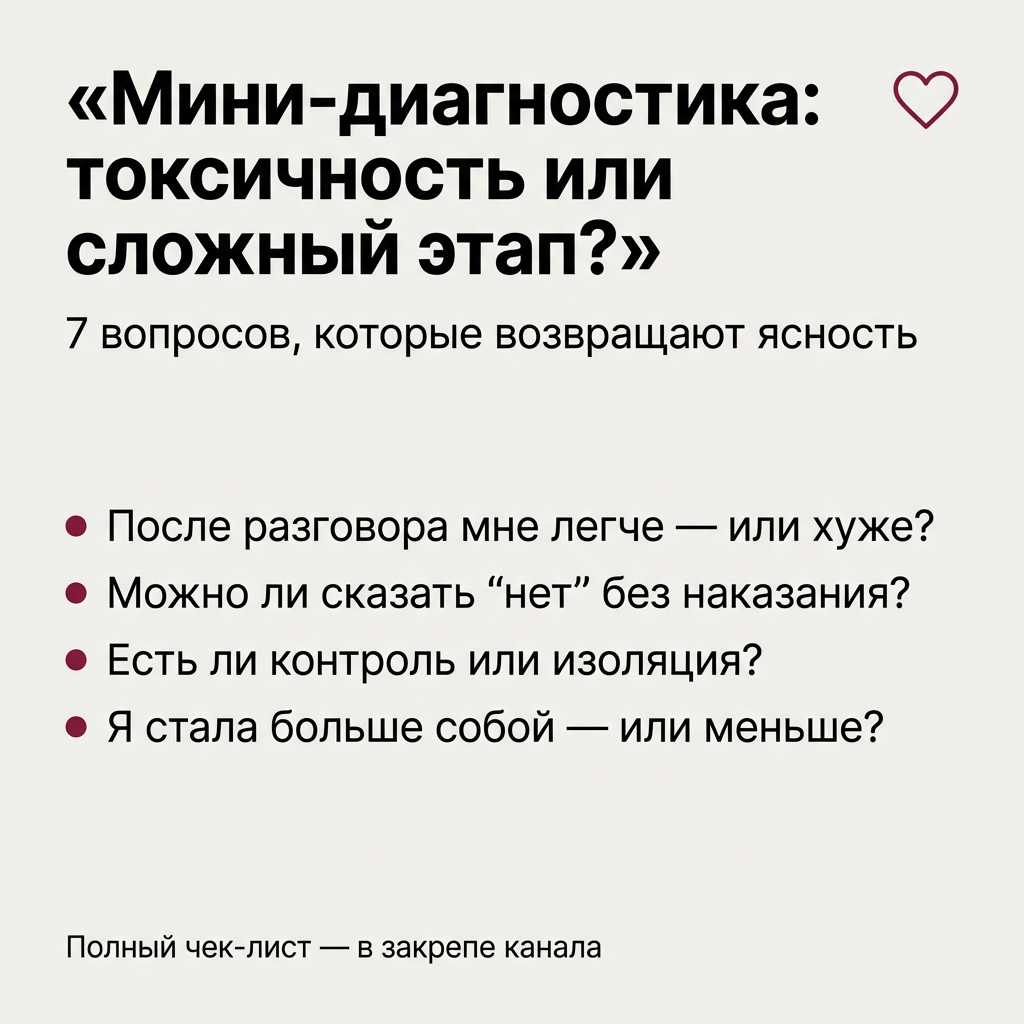 «Может, я правда придираюсь? Может, у всех так? Может, я слишком чувствительная?» Давайте сделаем бережную, но честную мини‑диагностику. Отметьте, что чаще похоже на вашу реальность (да/нет/иногда). Если у вас 3 “да” и больше по пунктам 2–6, это уже повод не “терпеть и ждать”, а разбираться в паттерне власти/контроля (это ключевой маркер абьюзивной динамики). Это собирательные примеры, детали изменены. Пример 1 (42 года, 2 детей, брак 14 лет).