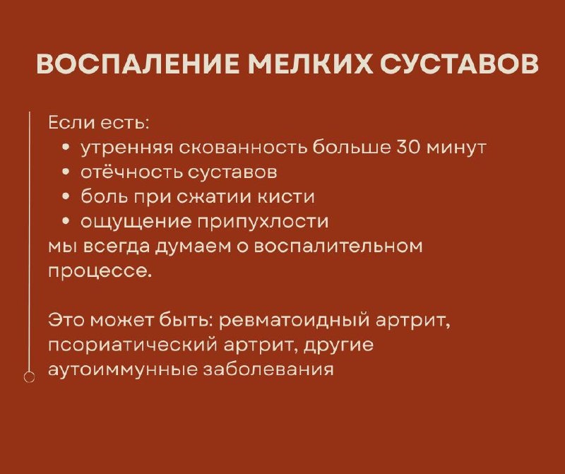 ». Что это может быть и когда нужно разбираться? Недавно на приёме мужчина, 48 лет. С виду спокойный, крепкий, работает руками. И первая фраза: «доктор, что-то странное. Ночью просыпаюсь — кисти крутит. Утром как будто не мои. Разожму-сожму — отпускает, но неприятно». Я спрашиваю: сколько длится скованность? Есть ли отёк? Обе руки или одна? И вот с этих простых вопросов часто начинается серьёзный разговор. Потому что «крутит кисти» — это не диагноз, а симптом. И иногда за ним стоит просто перегрузка. А иногда — начало ревматологического заболевания, которое лучше поймать как можно раньше. 👉 Давайте разбираться, что может стоять за такими ощущениями? Листайте карточки! 👉 А как же лечится? 1. При воспалении — противовоспалительная и базисная терапия. 2. При артрозе — снижение нагрузки, ЛФК, местные средства. 3. При туннельном синдроме — ортезы, физиотерапия, иногда хирургическое лечение. Самостоятельный приём обезболивающих без понимания причины — временное решение. Кто сталкив