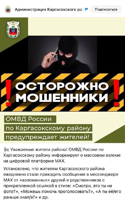 ОМВД Каргасокского района Томской области предупреждает о всплеске кибератак в мессенджере МАХ