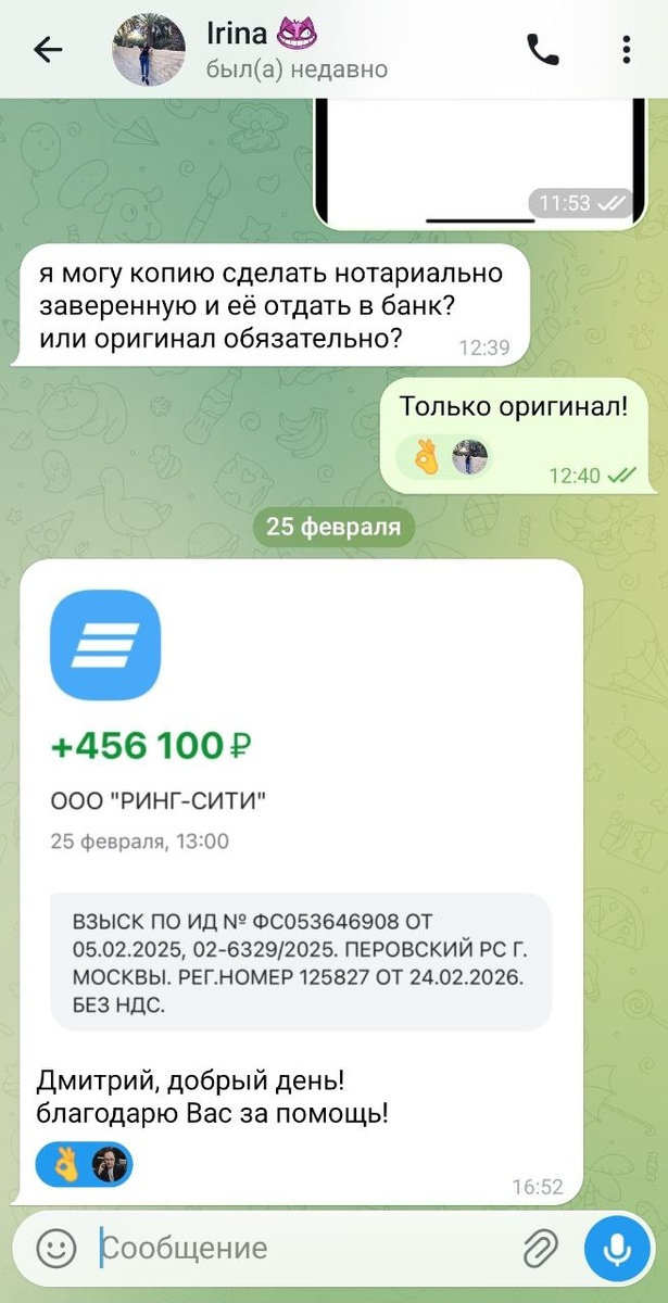 Исполнено очередное решение суда по взысканию средств с ООО Ринг-Сити. Консультации по телефону +79177721744.