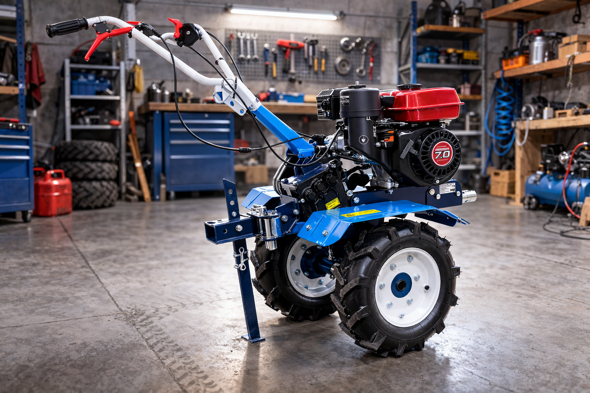 Покупая мотоблок, многие первым делом смотрят на «лошадиные силы». Но надежность складывается из трех узлов: рамы, редуктора и двигателя. Разберем: где важно не экономить? 1) РАМА: чтобы мотоблок не «гулял» и не ломал редуктор Рама — «скелет» мотоблока. Если он слабый, под нагрузкой: навеска встает криво, ремень работает с перекосом, а редуктор получает лишние удары. Что критично:
