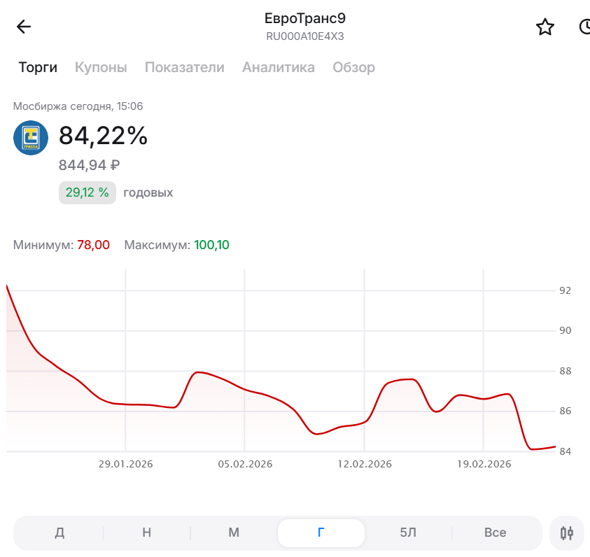 Уже несколько месяцев я слежу за ситуаций вокруг облигаций ПАО Евротранса, когда заметил в прошлом году феномен одновременного размещения этих ценных бумаг на первичном рынке и торговли на вторичном с существенным дисконтом: В итоге ситуация вылилась в информацию об аресте счетов компании и новый обвал: Сейчас обстановка вроде стабилизировалась - эмитент выплатил очередные купоны, но облигации того же выпуска ЕвроТранс09 торгуются по 84.22% - ниже, чем 87%, цены по которой сливали облигации при формальном первичном размещении по 100%. Но ЕвроТранс не один такой эмитент, практикующий размещение с дисконтом при формальных цифрах в 100%. Вот его собрат - ПАО "ВУШ ХОЛДИНГ". В последнее время у него дела идут не очень. Акции на многолетних минимумах: Через несколько месяцев нужно погашать облигации: И вот самокатчики в конце января вышли на рынок с новым выпуском: iВУШ 1P5 RU000A10E6D0 Формально продавая его по 100% на первичном рынке: Одновременно эти облигации торговались на вторичном ры