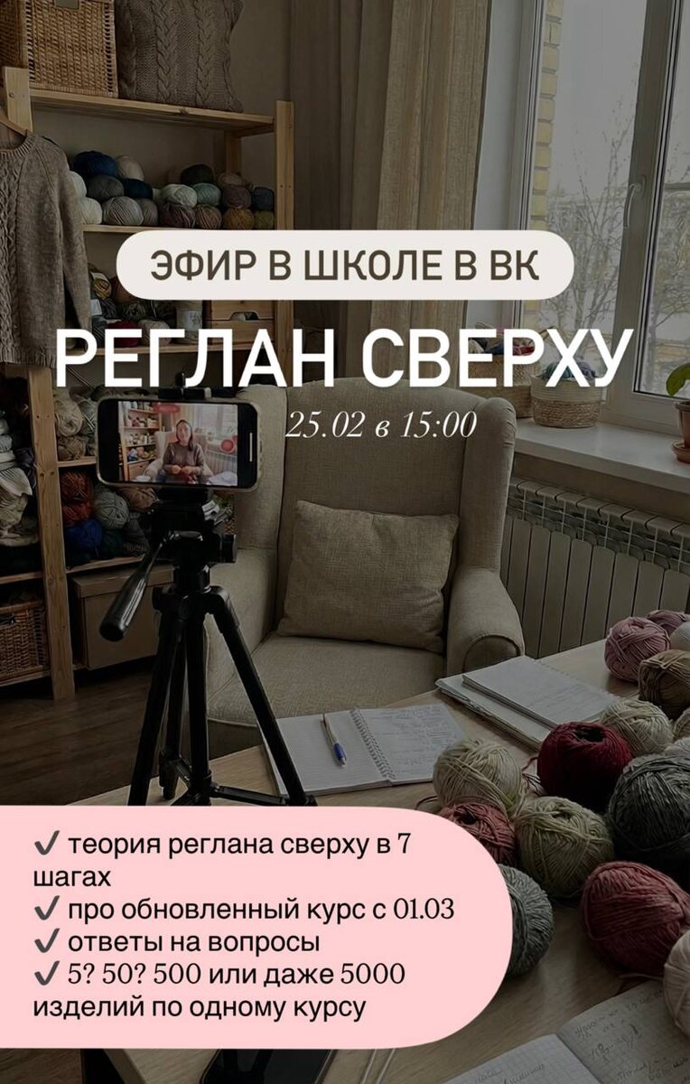 https://vk.ru/tanyakurochkina_ru Тема : РЕГЛАН СВЕРХУ ✔️ расскажу про алгоритм вязания реглана, разложу его на шаги, следуя которым вы всегда будете вязать с первого раза свои все плечевые ✔️ расскажу про обновленный курс (что войдет, что добавила, что изменила) ✔️ 5? 50? 500? Или 5000 изделий можно связать на основе одного лишь курса ? ✔️ отвечу на все вопросы ) их можно будет задать сразу в эфире