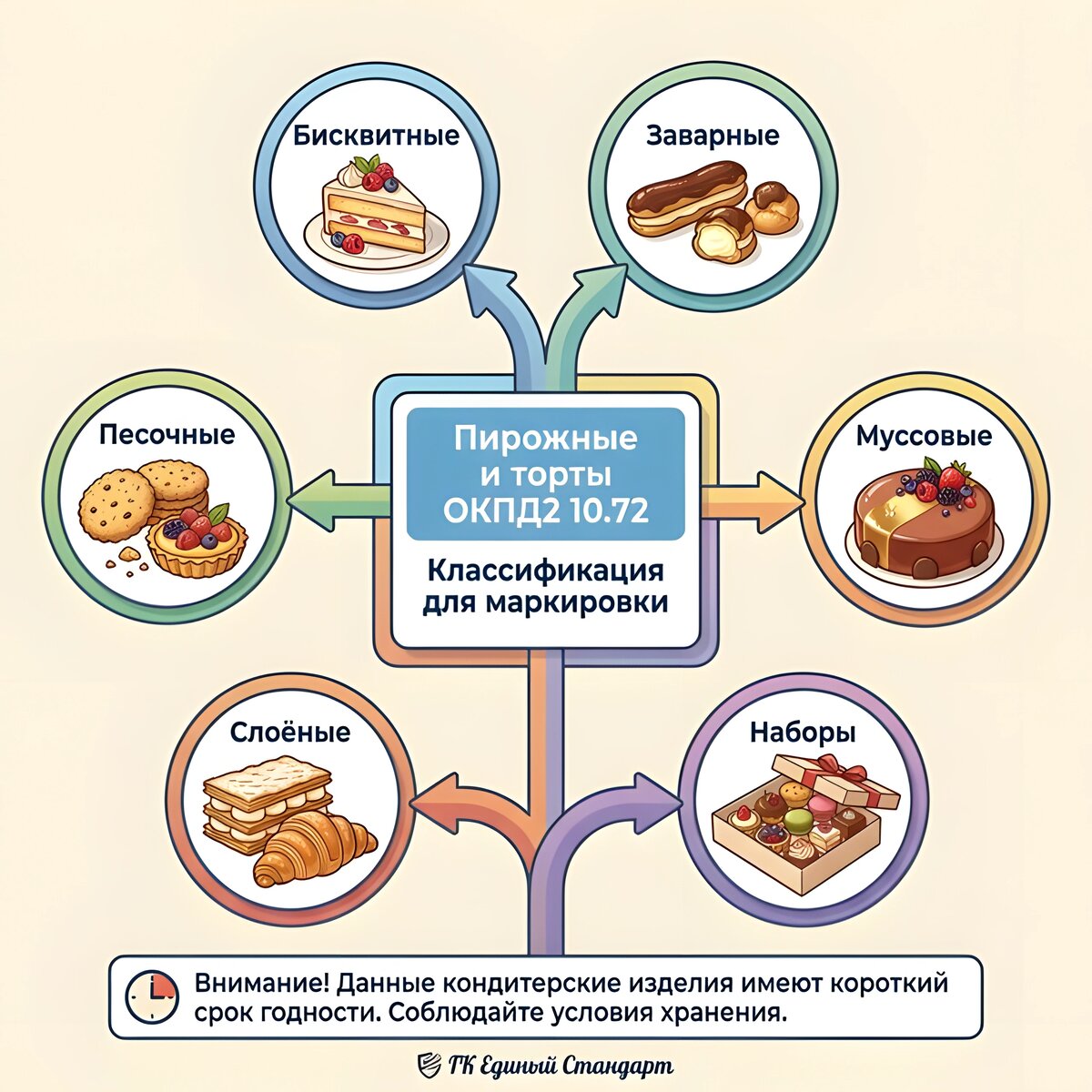 Виды пирожных: что маркируется