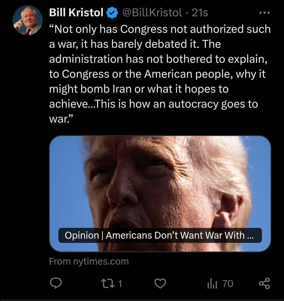 На горе засвистели раки, адское пекло перемёрзло, Дунай потёк вспять: Билл Кристол, главный неокон всея Америки и голос AIPAC, выступил против войны с Ираном.