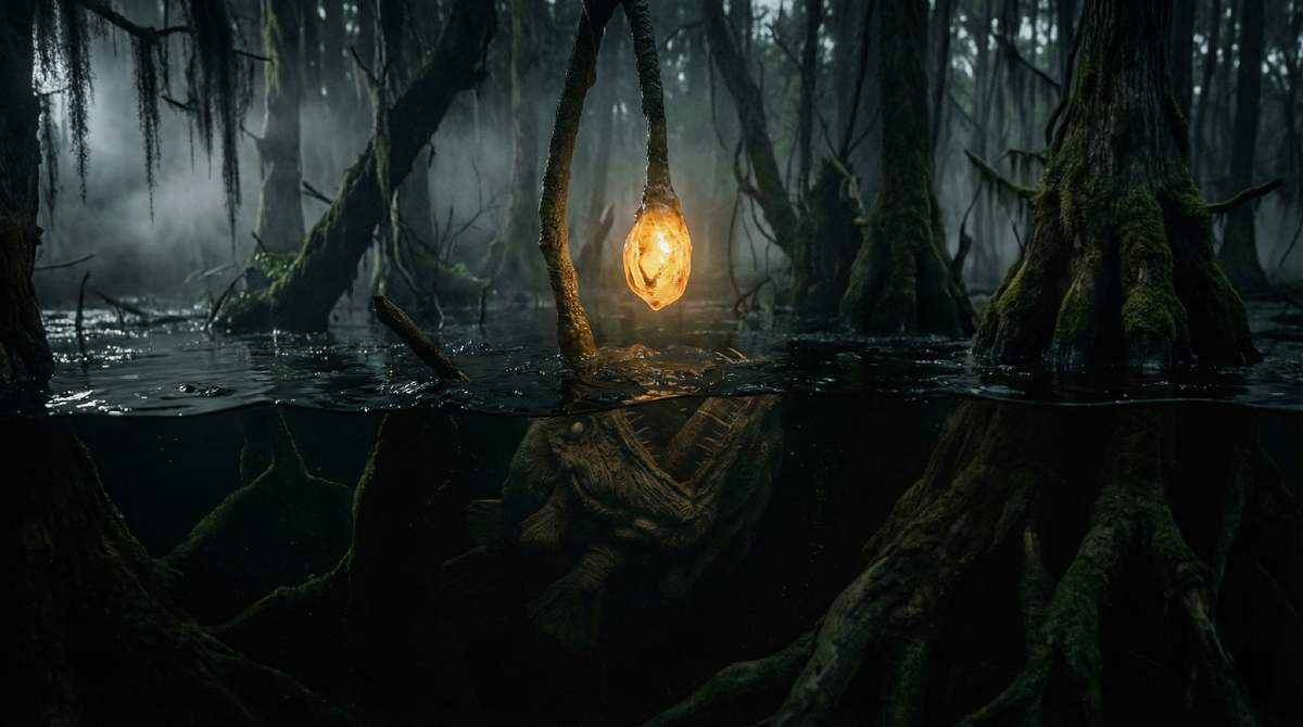 Я шел на свет фонаря в ночном болоте, пока не понял, что фонарь растет прямо из головы существа под моими ногами!
