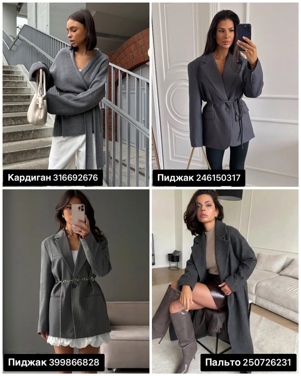 Главная идея этой подборки — умный баланс: немного структуры (пиджаки и пальто), немного мягкости (кардиган, трикотаж), и уверенные оттенки (серый, винный, шоколадный). Если хотите быстрый эффект «дорого и собранно», держите правило: