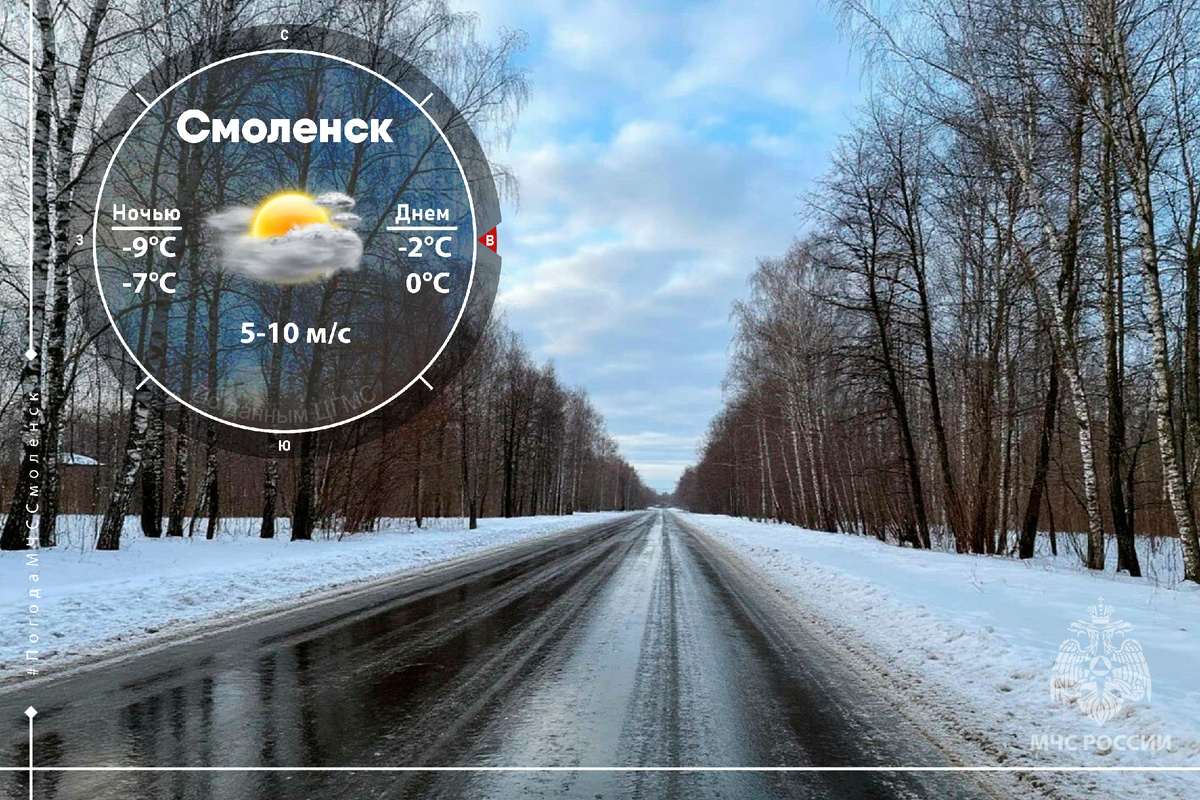 Завтра, 26 февраля, в Смоленской области переменная облачность, без осадков. Главная опасность — на дорогах гололедица! Будьте аккуратнее за рулём и на тротуарах.