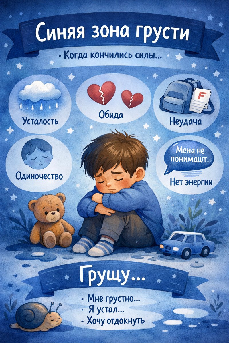 Когда ребёнок понимает: «Я сейчас в Синей зоне» — это уже шаг к регуляции.