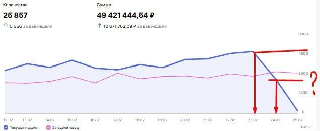 ❓Коллеги, весь день отгадываем загадку: вчера прошло резкое снижение продаж (!) в 2 раза почти.